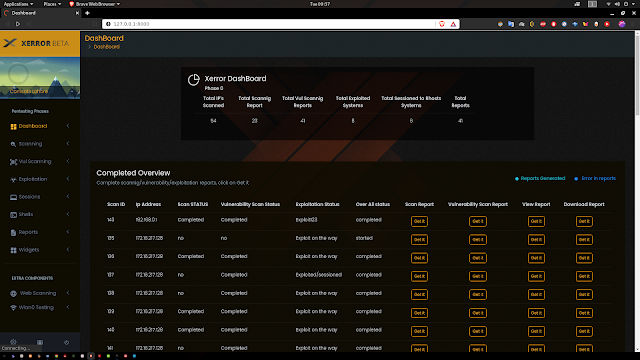 Xerror menyediakan GUI mudah untuk menggunakan menu didorong options.Iinternally mendukung OpenVAS untuk kerentanan pemindaian, Metasploit untuk eksploitasi dan memberikan pilihan berdasarkan GUI setelah eksploitasi sukses misalnya meterpreter sessoins. Membangun dengan python sebagai mayor.